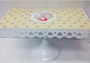 BANDEJA PIE DE TORTA DE METAL CON DISEÑO 27 CM. – AMARILLA – LEV –