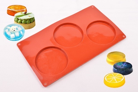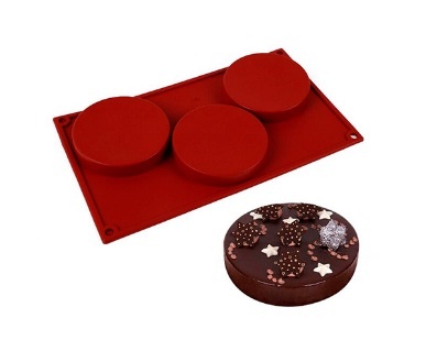 Molde de silicona círculos por 3 unidades. Medida del molde: 16 cm. por 28 cm. Medida de cada círculo 9 cm. de diámetro.
