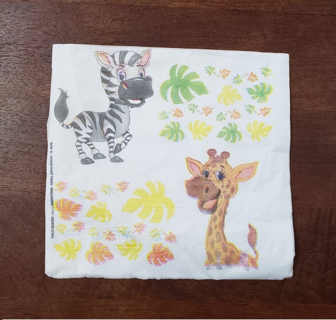 Servilletas descartables con diseño de “Selva”. Material: papel. Medida: 17 cm. por 16 cm. Pack 20 unidades. Son ideales para las mesas de un cumpleaños o festejo infantil. Pueden combinarse con otros productos de la línea de “Selva”.